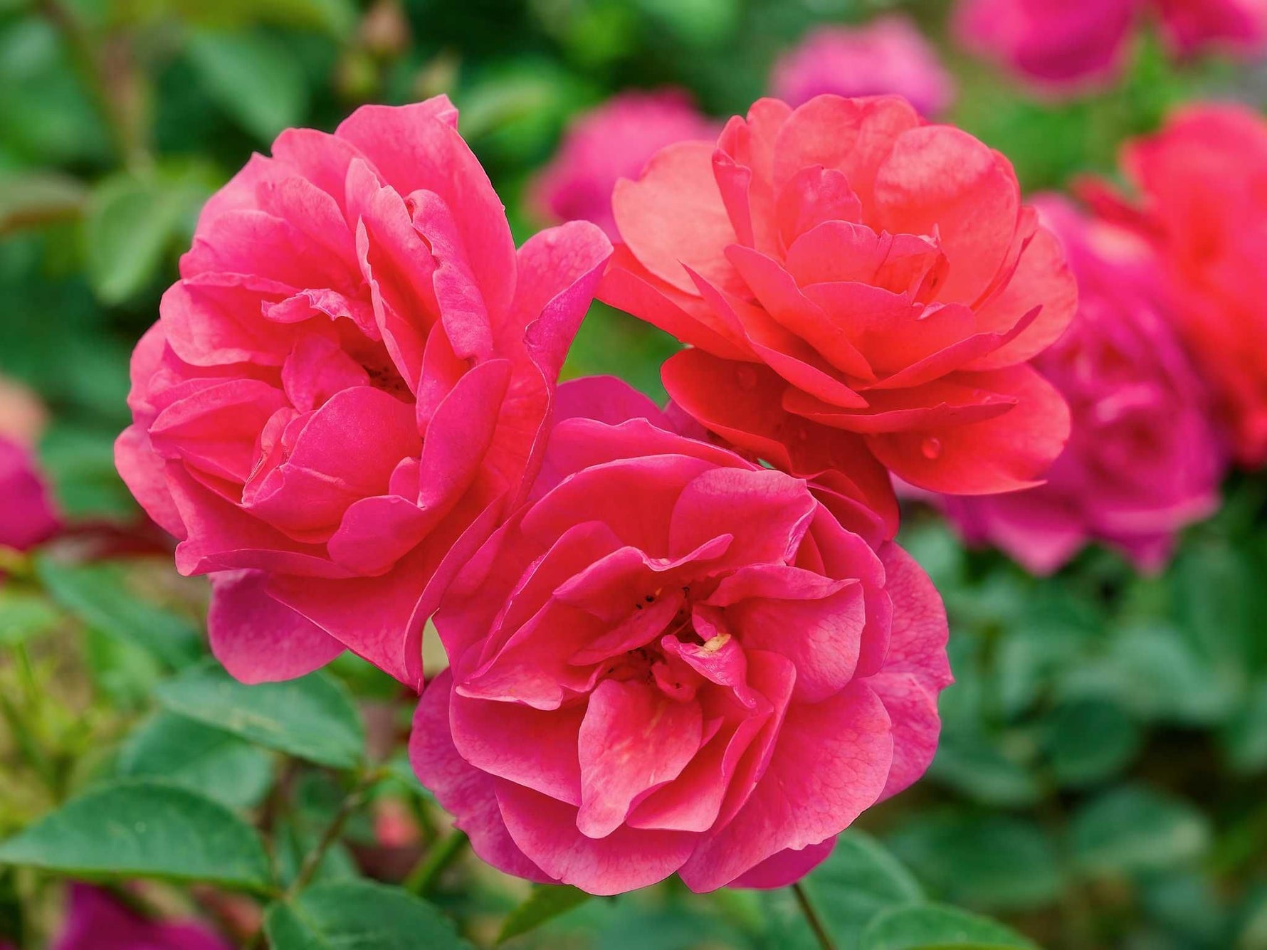 Eine blühfreudige Beetrose, die mit ihrer himbeerroten Farbe schon von weitem auf sich aufmerksam macht. Die halbgefüllten, mittelgroßen, schalenförmigen Blüten erscheinen in großen Büscheln und färben sich rosa. Sie verströmen einen zarten Duft. Ihre Blätter sind dunkelgrün, glänzend und gesund. Eine fröhliche Erscheinung, die sowohl im Kübel, als auch in der Rabatte eine gute Figur macht.