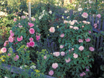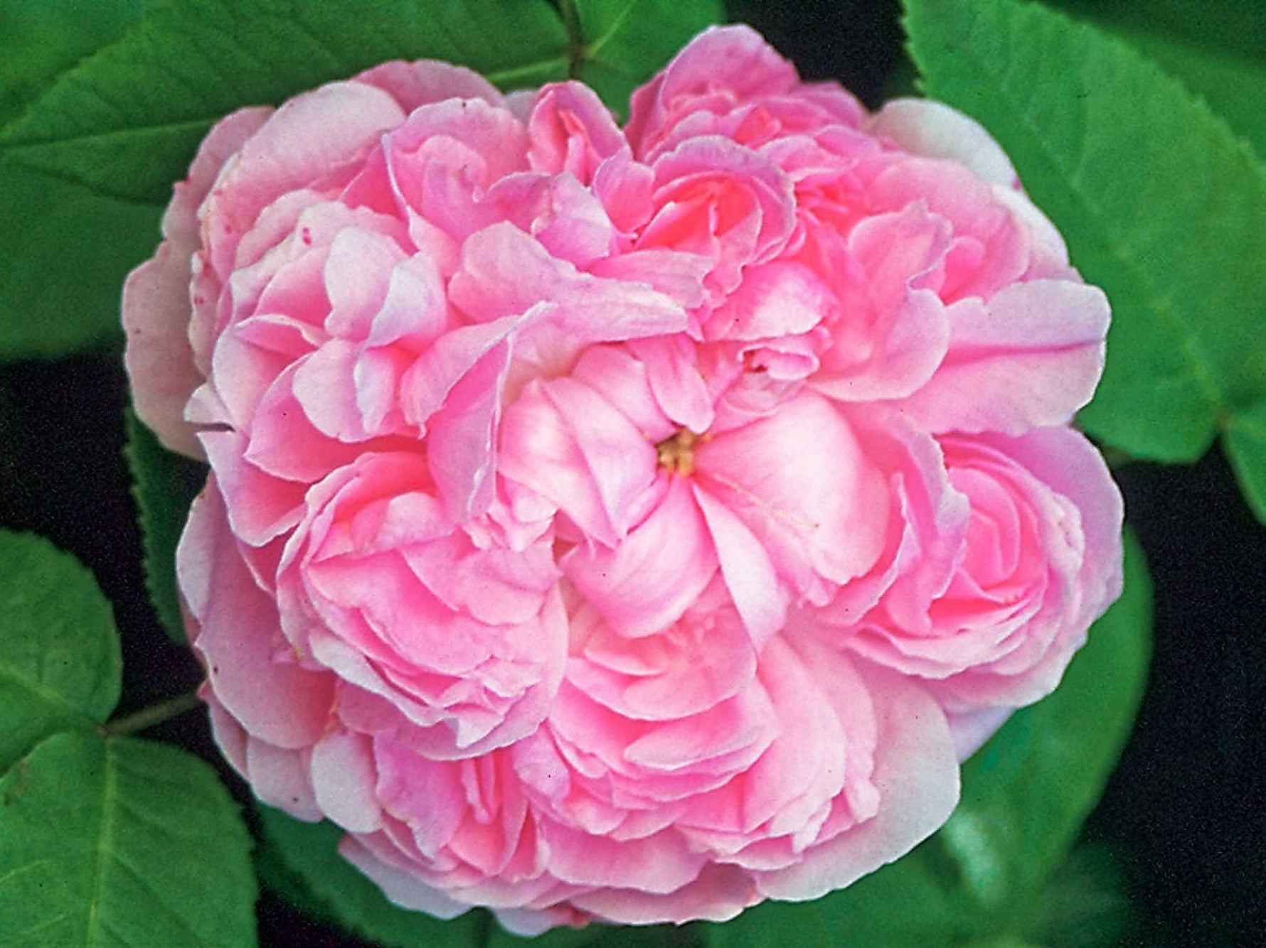 Die dicht gefüllten flachen Rosettenblüten in rosa duften sehr stark. Buschig aufrechter Wuchs bis 120 cm Höhe. Sehr robuste historische Strauchrose. Zur Rosenblütenernte, Hecken und für Kübel geeignet