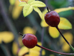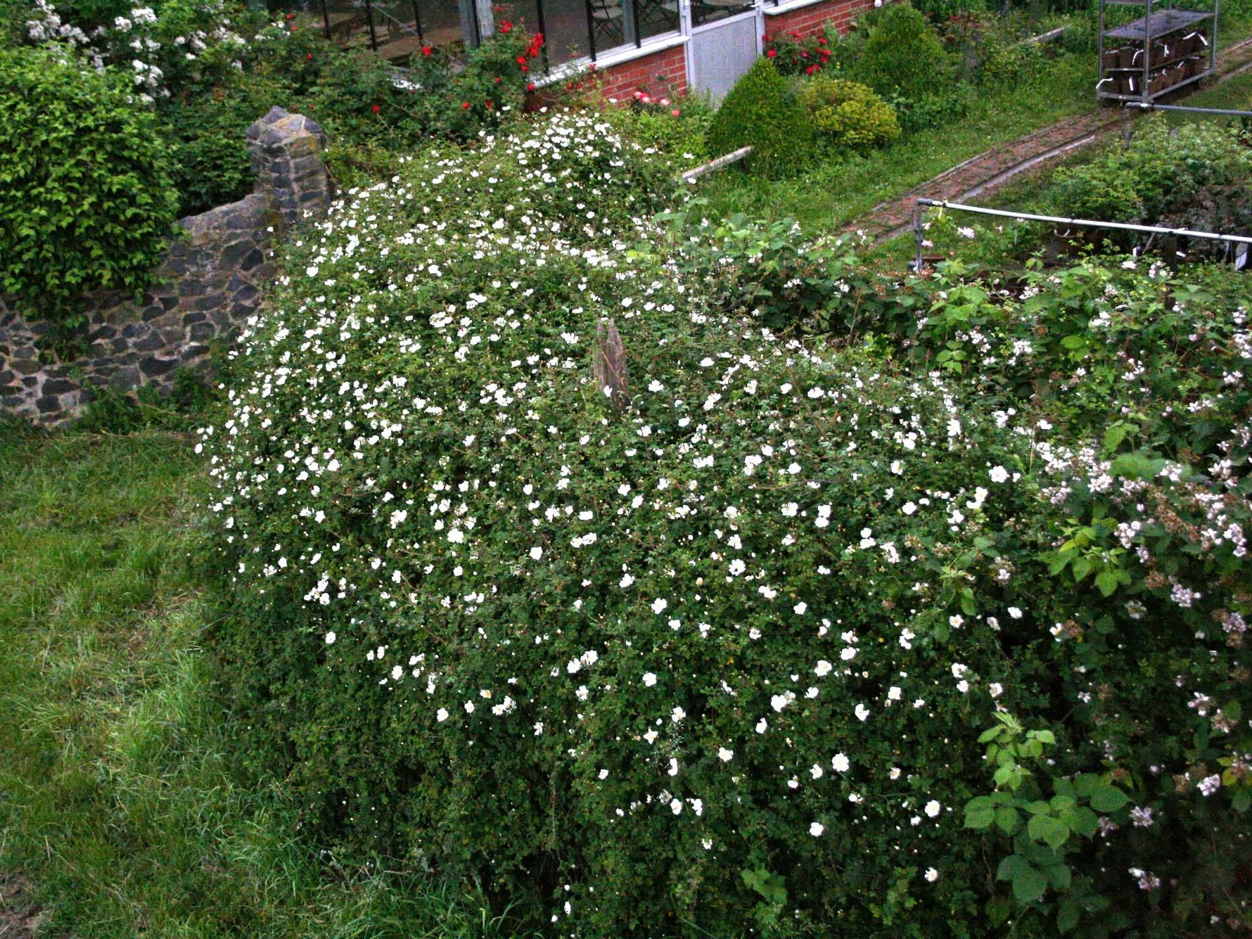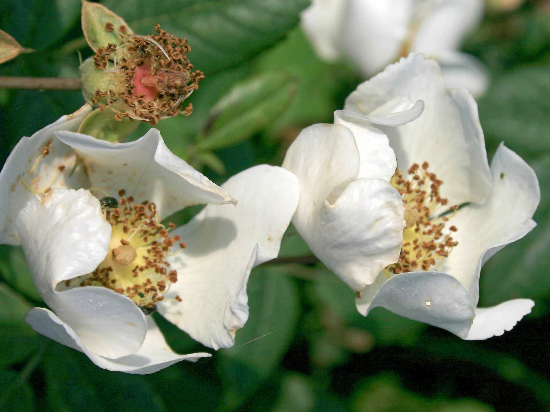 Die Kriechrose. Die kleinen, einfachen, duftenden Blüten sitzen einzeln an den Kriechtrieben mit denen diese Rose den Boden überwuchert. Das Laub ist klein und matt bläulichgrün. Eine äußerst ungewöhnliche Rose, die ähnlich wie Brombeeren sogar im Wald den Boden überwuchert. Diese Rose ist die Urmutter vieler frostharter Rambler der ayrshire-Gruppe. Ihre kleinen, kugelrunden Hagebutten mit dem deutlichen Stempelrest am Ende sind eindeutig das vielbesungene "Männlein im Walde" und eben nicht die ovale Butte der canina, die ja eher im Felde wächst.