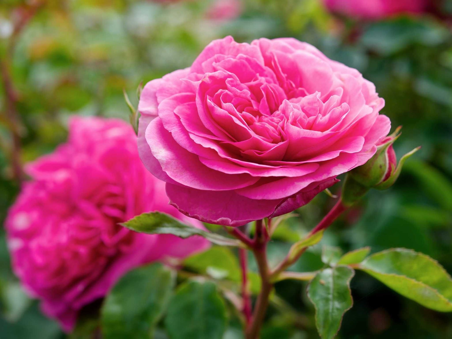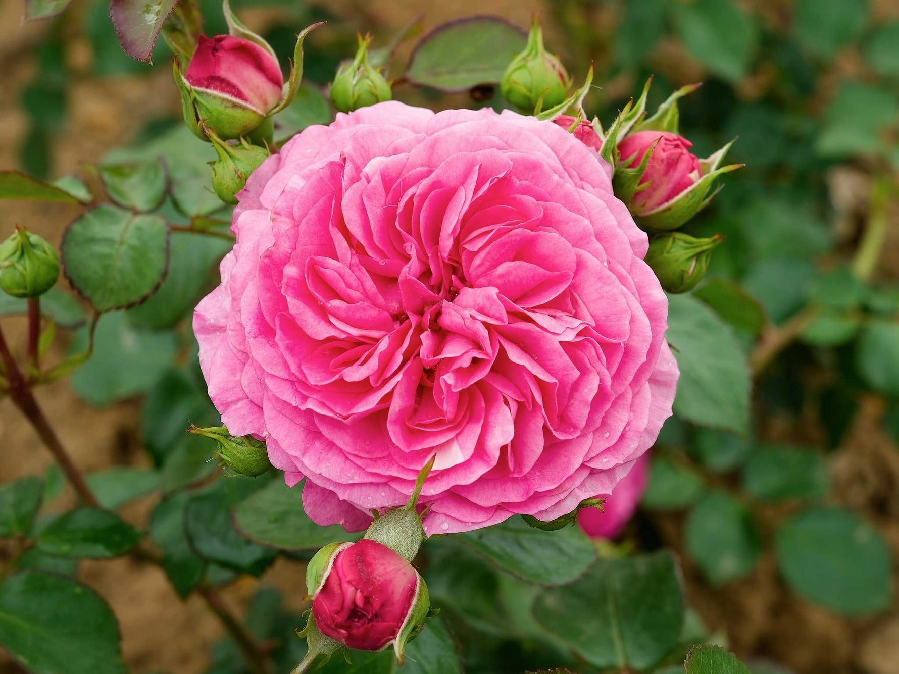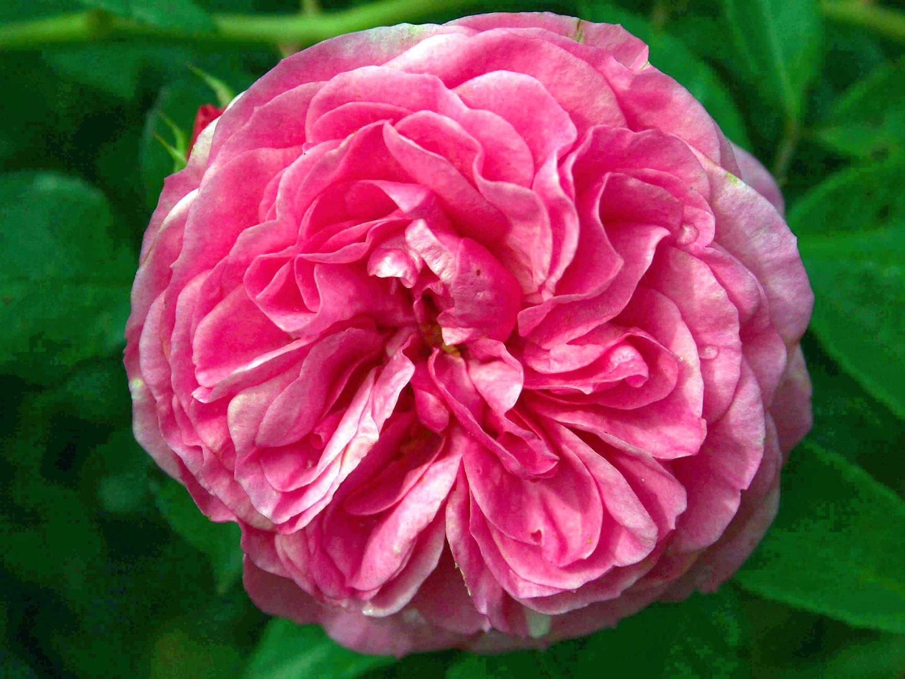 Die dicht gefüllten Blüten in kräftigem rosa, blühen in Dolden und duften zart. Buschiger Wuchs bis 80 cm Höhe. Robuste Beetrose. Zum Schnitt und für Kübel geeignet