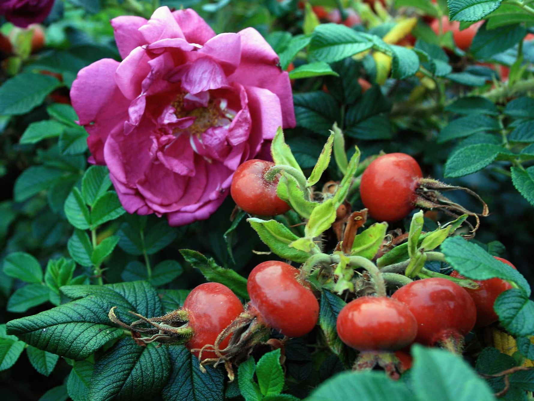 Die leicht gefüllten, altrosa Blüten duften stark. Kräftiger, breitbuschiger kompakter Wuchs bis 80 cm. Sehr robuste Sorte. Bildet viele Hagebutten. Sehr frostbeständig, Insektenmagnet