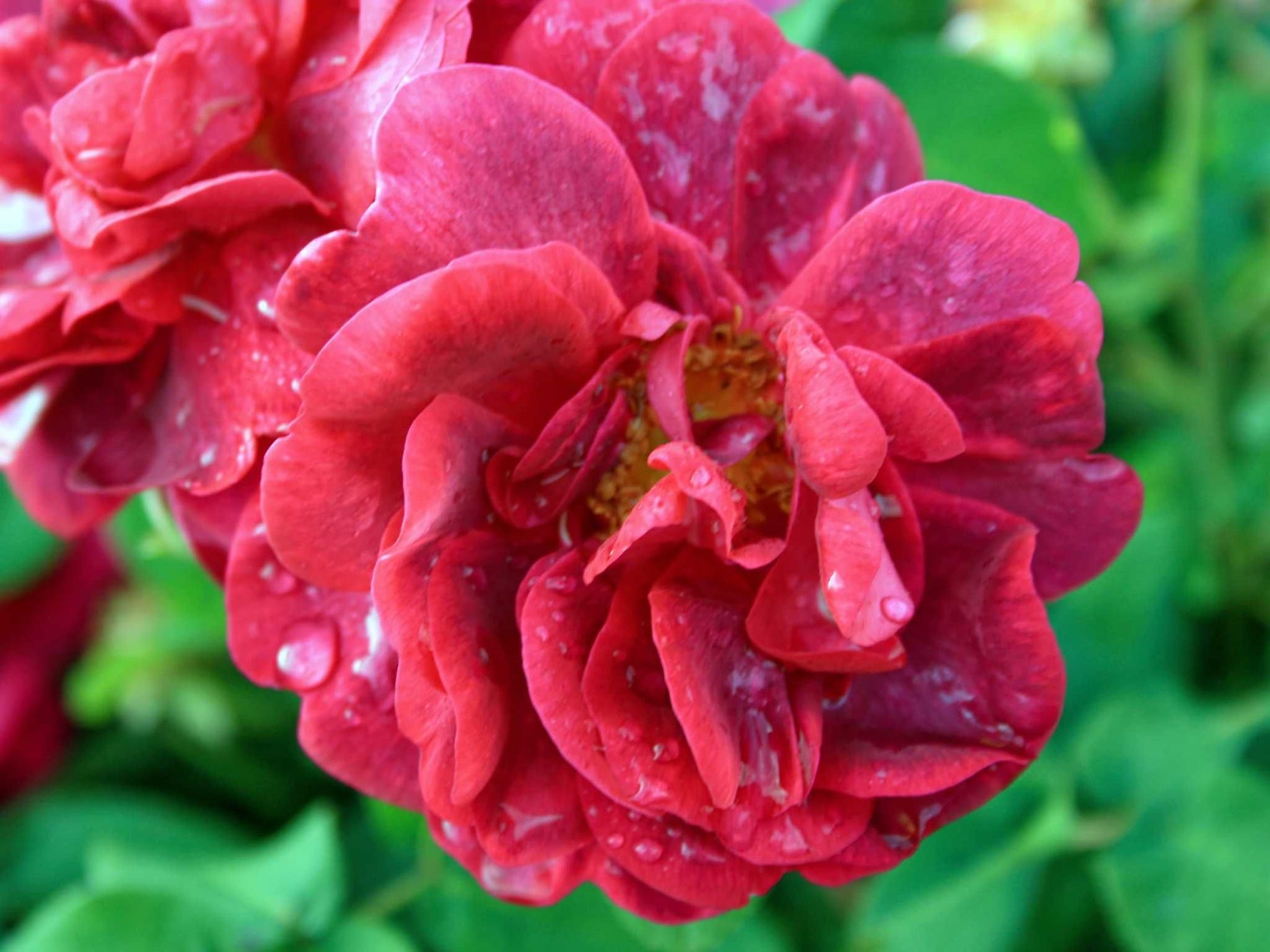 Die halbgefüllten Blüten in dunkelrot duften gut. Einmalblühend. Buschig aufrechter Wuchs bis 160 cm Höhe. Sehr robuste historische Strauchrose. Zur Rosenblütenernte, insektenfreundlich und für Hecken geeignet