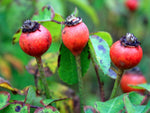 Der kompakte Strauch gibt auch im Garten eine schöne Form ab. Sehr frosthart und gesund. Setzt große, runde Hagebutten an.