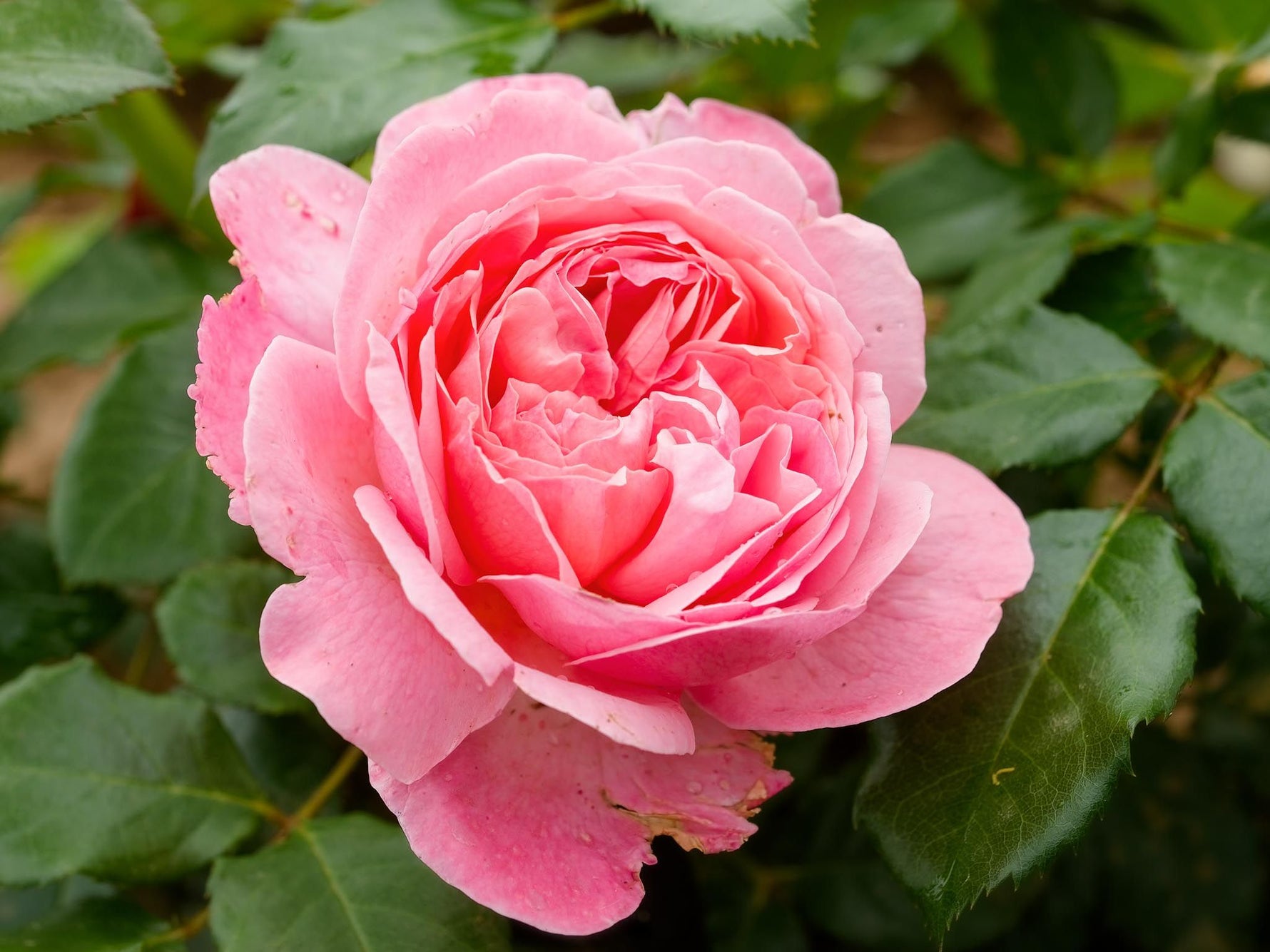 Die großen rosa farbenen, dicht gefüllten Blüten duften stark und haben einen apricot farbenen Hauch. Die Blütenbälle erscheinen in Dolden. Robuste Strauchrose, die für Hecken geeignet ist, bis 120 cm hoch wird und gute Blattgesundheit aufweist.