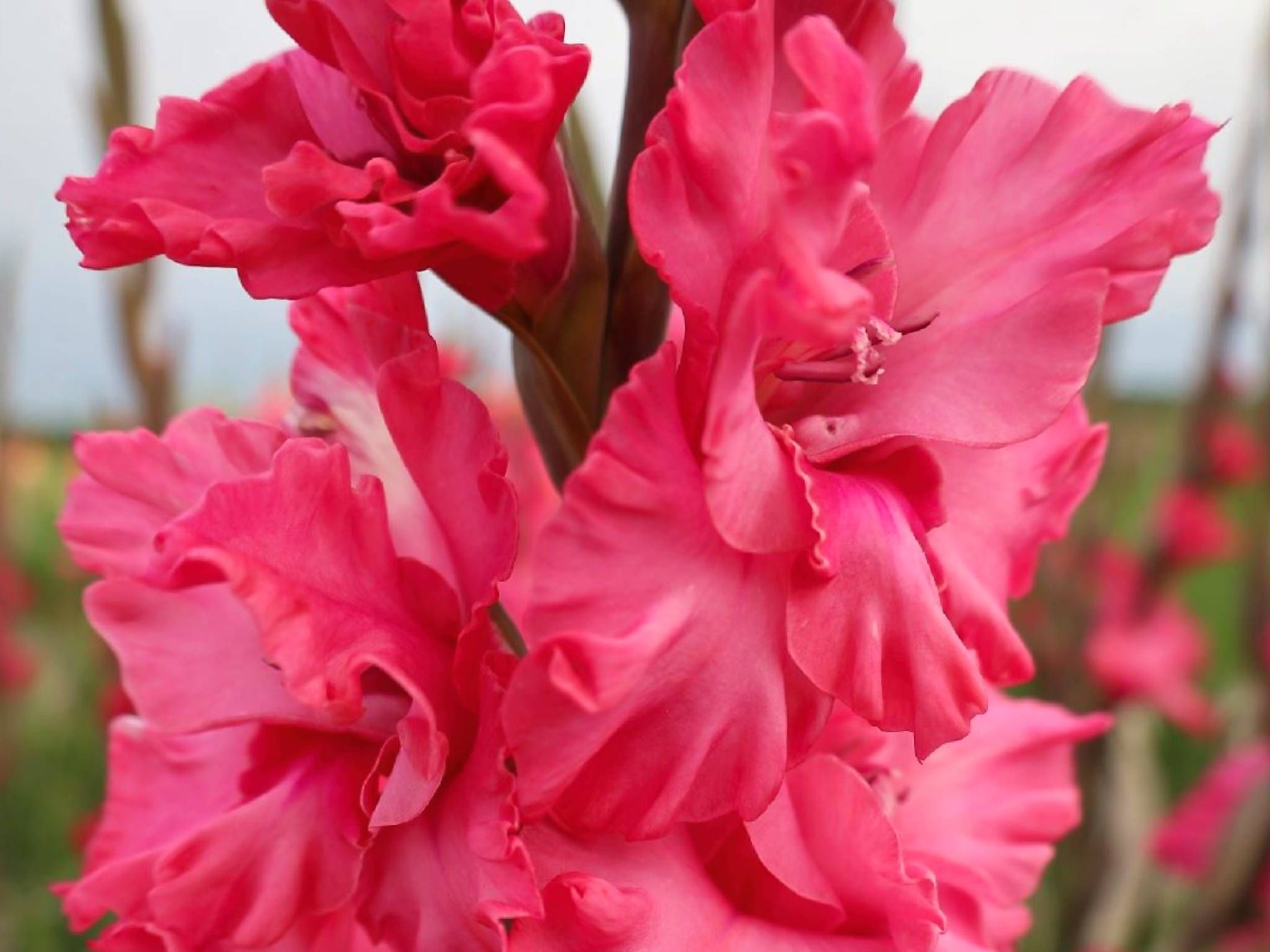 Die 'Kingston Ruffle' Gladiolen blühen rosarot und haben einen feinen gerüschten Rand der Blütenblätter. Sie sind eine schöne Ergänzung für Ihren Garten unter Stauden oder im Gemüsegarten.