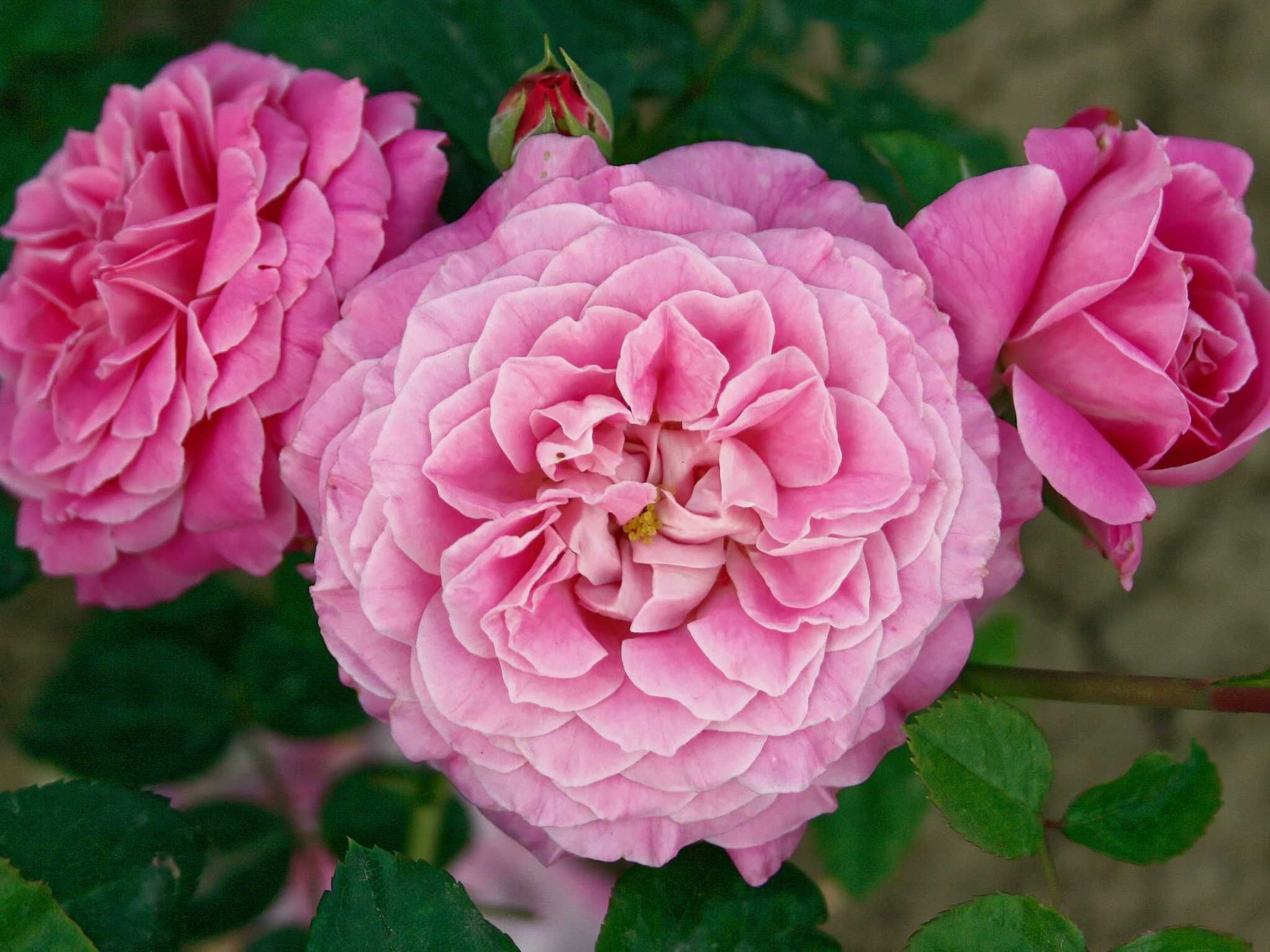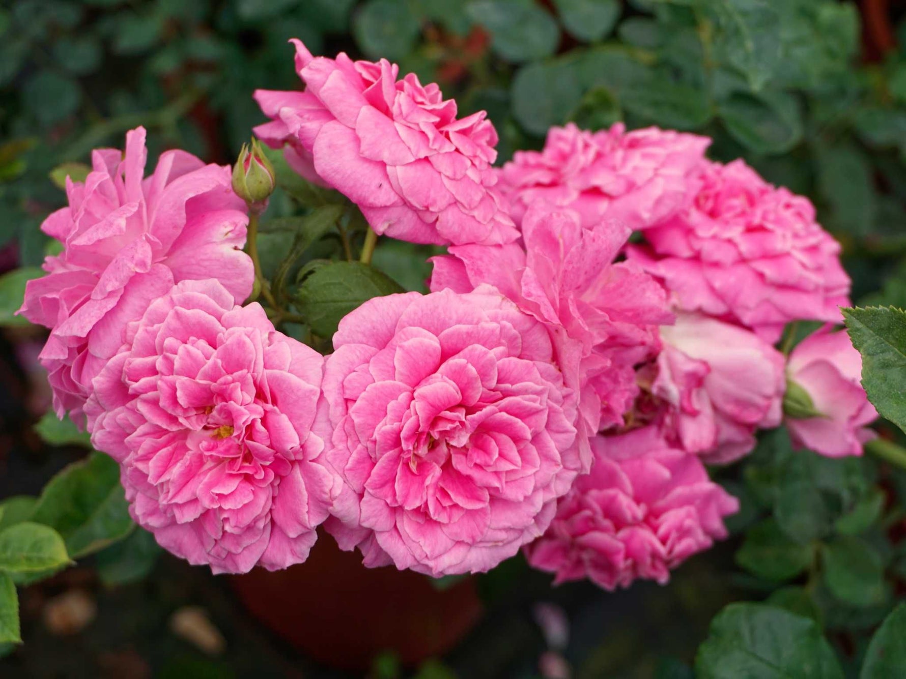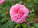 Die gut gefüllten Blüten in rosa blühen in Dolden und duften zart. Buschiger Wuchs bis 200 cm Höhe. Robuste Strauchrose. Kübelgeeignet, hitzeverträglich