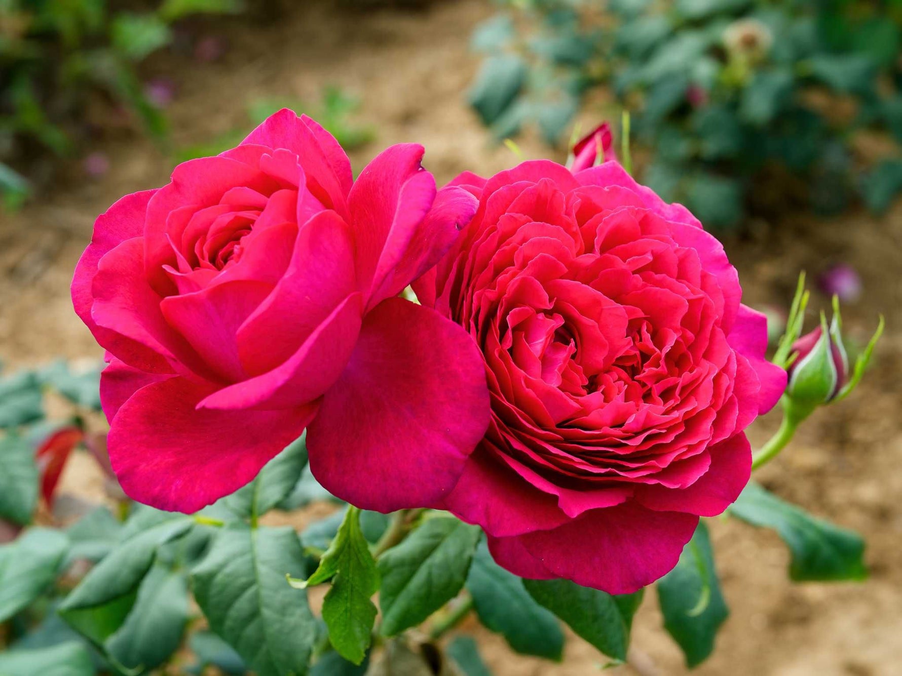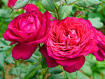 Die sehr großen Blüten sind tiefviolett und kugelig edelrosenförmig. Ältere Blüten verändern sich je nach Wetter und entwickeln dabei elegat-morbide Töne bis hin zu bläulich-pink. Das Laub ist groß, matt dunkelgrün und etwas wellig. Die Triebe sind kräftig und wenig bestachelt. Vom buschigen, kompakten Wuchs her eindeutig eine Edelrose, entsprechen die Blüten von der Fülle und dem Duft eher den Englischen Rosen. Die Blüten erscheinen oft in Dolden, manchmal aber auch einzeln und eignen sich auch zum Schnitt. Eine Rose, die den Wuchs der Edelrose mit der romantischen Blütenform verbindet. Wer also romantische Blüten möchte, aber die Wuchsform und das Öfterblühen der modernen Rosen bevorzugt, hat hier alles in einem.