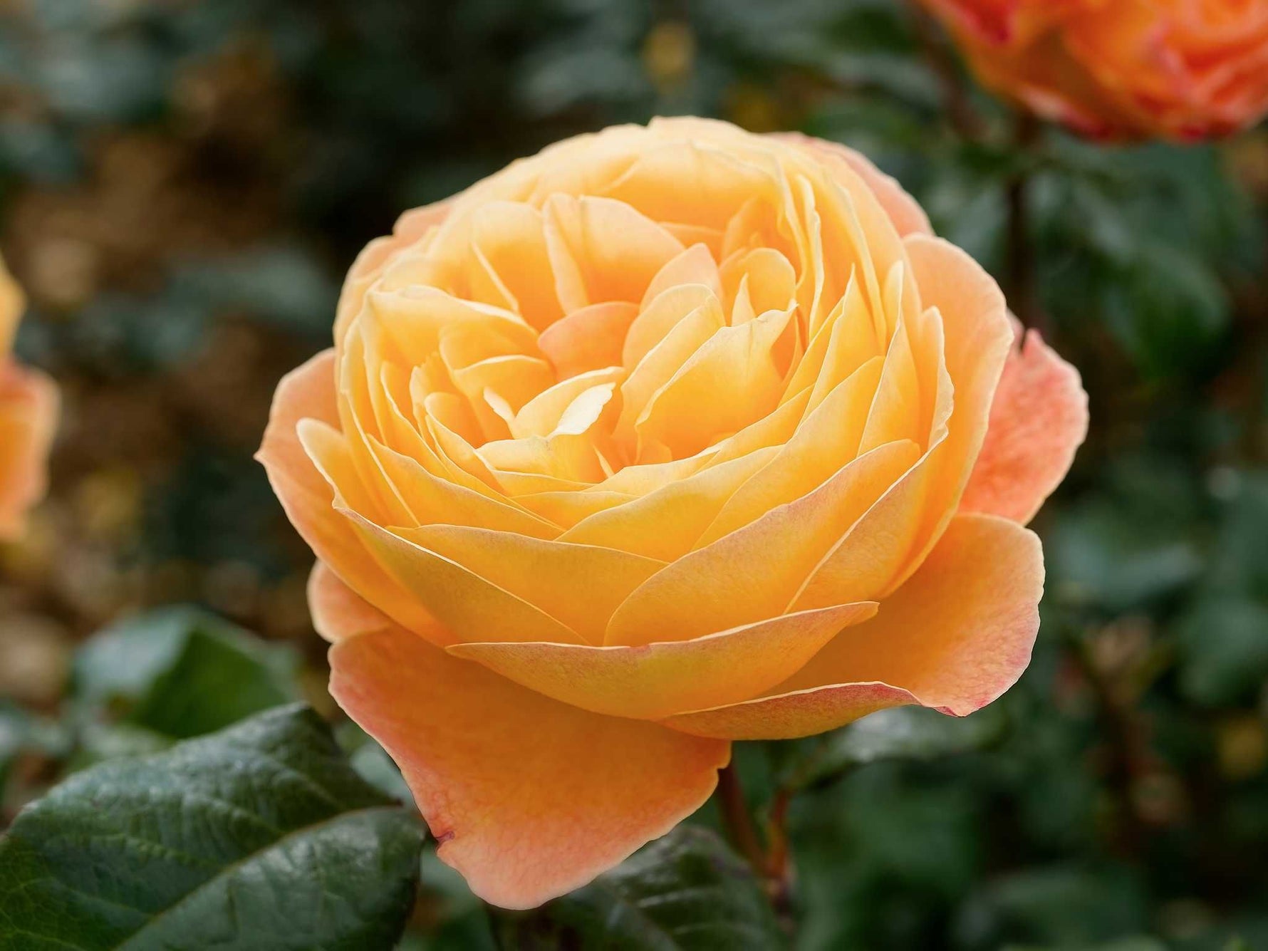 Die dichtgefüllten Blüten in apricot blühen in Dolden. Sehr starker Duft. Buschiger Wuchs bis 80 cm Höhe. Robuste Beetrose. Für Kübel geeignet, essbare süßliche Blüten.