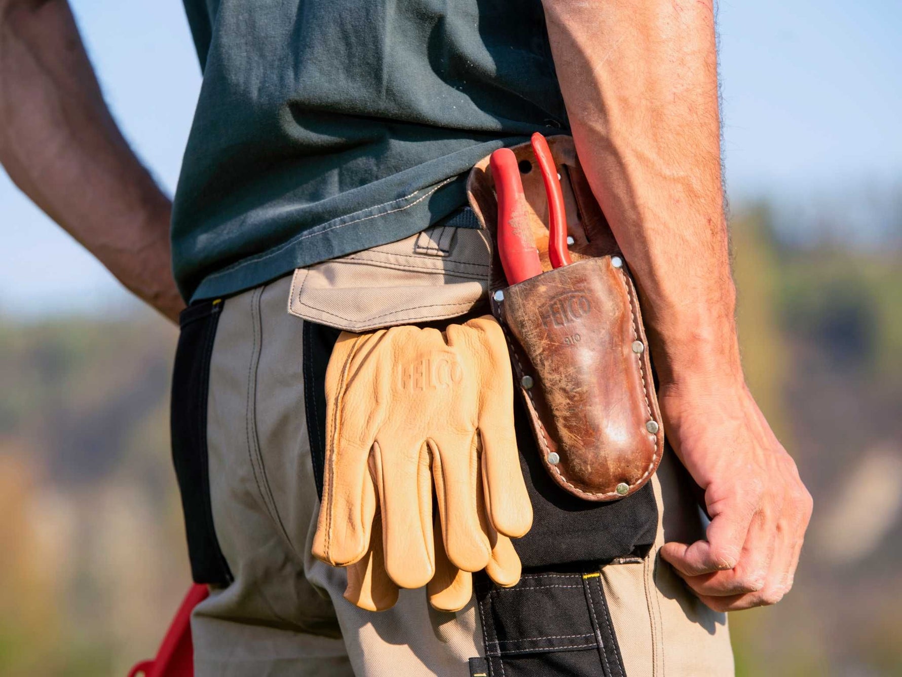 Das Lederholster Felco 910 eignet sich perfekt, um eine Gartenschere zu halten und am Körper zu tragen.