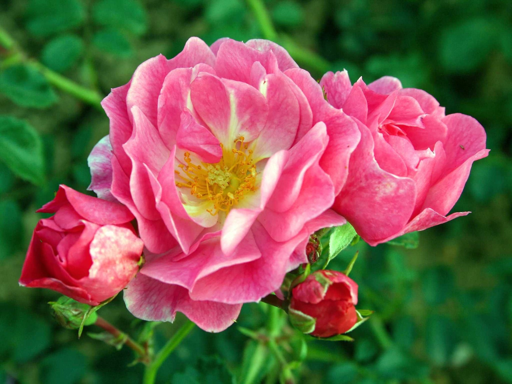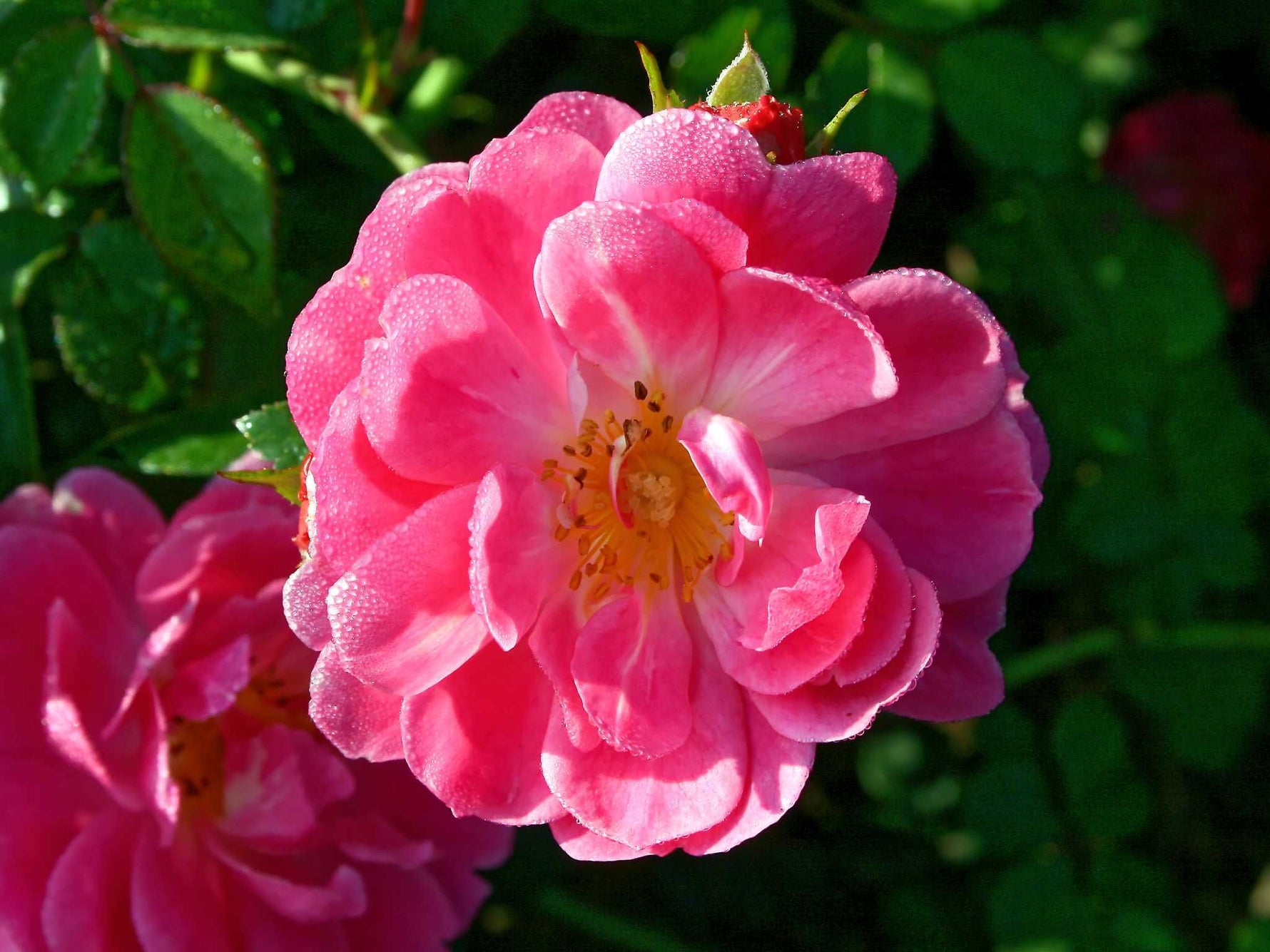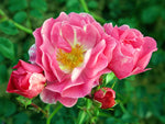 Die halbgefüllten Blüten in rosa blühen in Dolden und duften gut. Buschiger flacher Wuchs bis 80 cm Höhe. Robuste Bodendeckerrose. Zur flächigen Pflanzung, für Kübel und Mauerkronen geeignet, insektenfreundlich, bildet Hagebutten