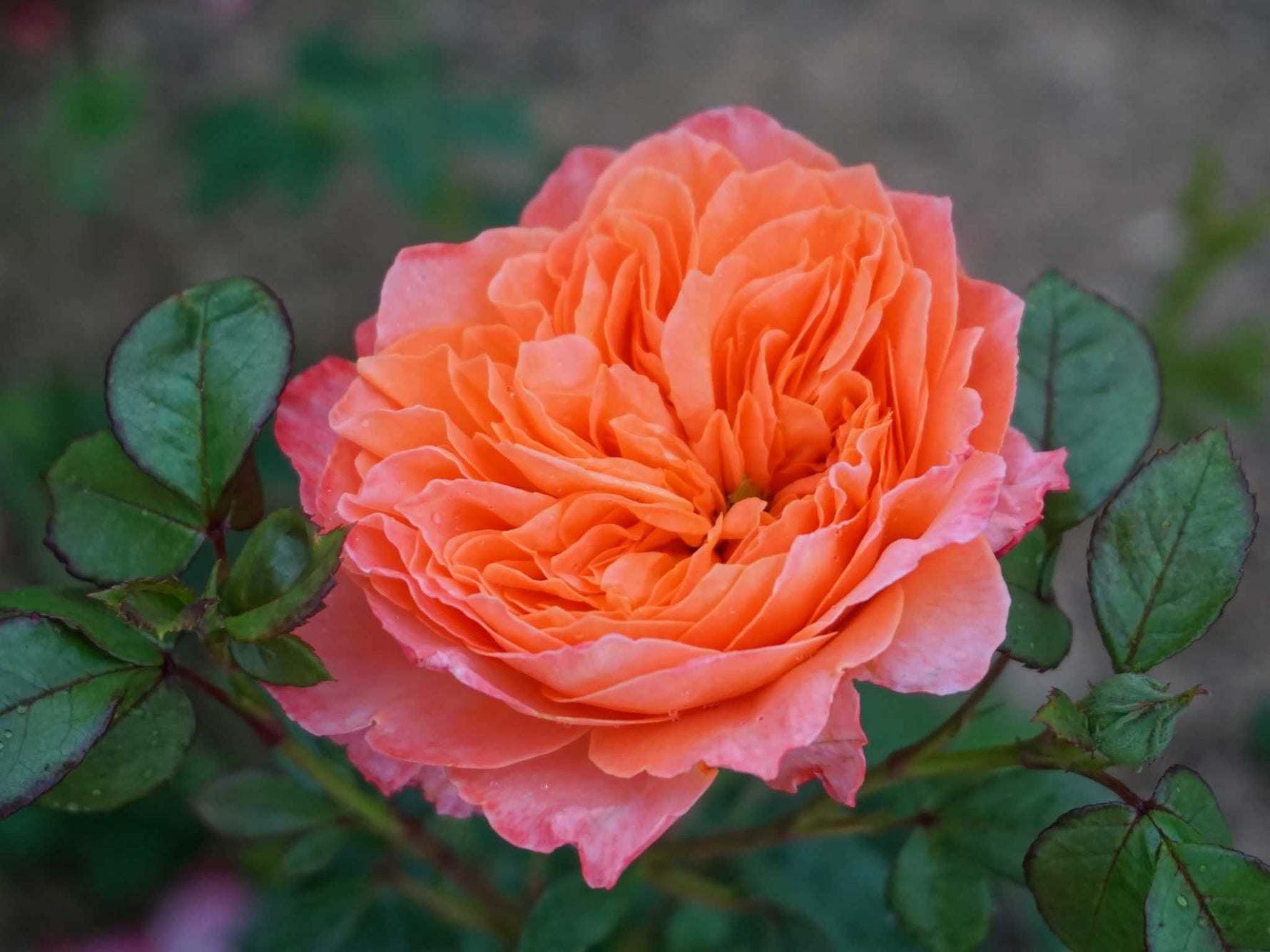 Perfekt gewirbelte, dicht gefüllte, und fein duftende Blüten. Die rein mandarinorangenen Blüten säumt aussen ein rosafarbener "Heiligenschein" der sie besonders hervorhebt. Eine Rose, die buschig und kompakt wächst. Ihr Laub ist hellgrün, glänzend und üppig. Eine dankbare Rose auch für kleinere Plätze und Kübel. Die üppigen großen Blütendolden verlangen regelmäßige Düngung, sonst eher pflegeleichte Sorte.