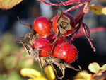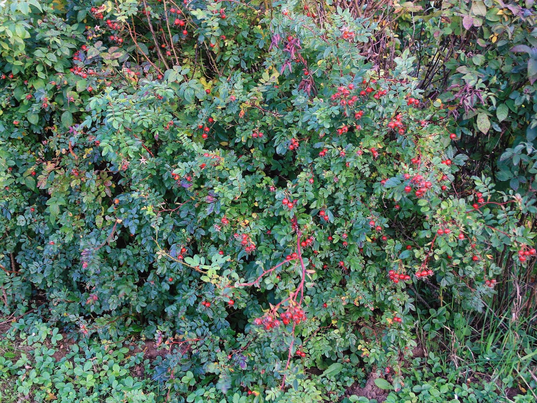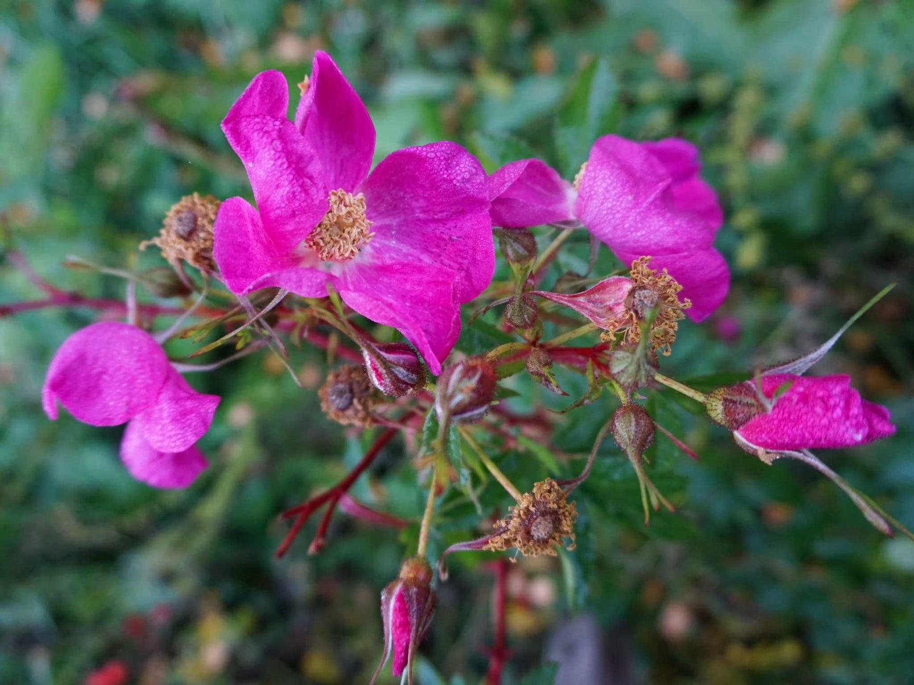 Einfache Blüten in rosa. Buschig kompakter Wuchs bis 120 cm Höhe. Sehr robuste Wildrose. Bildet Hagebutten, insektenfreundlich, für kompakte Hecken, schöne Herbstfärbung