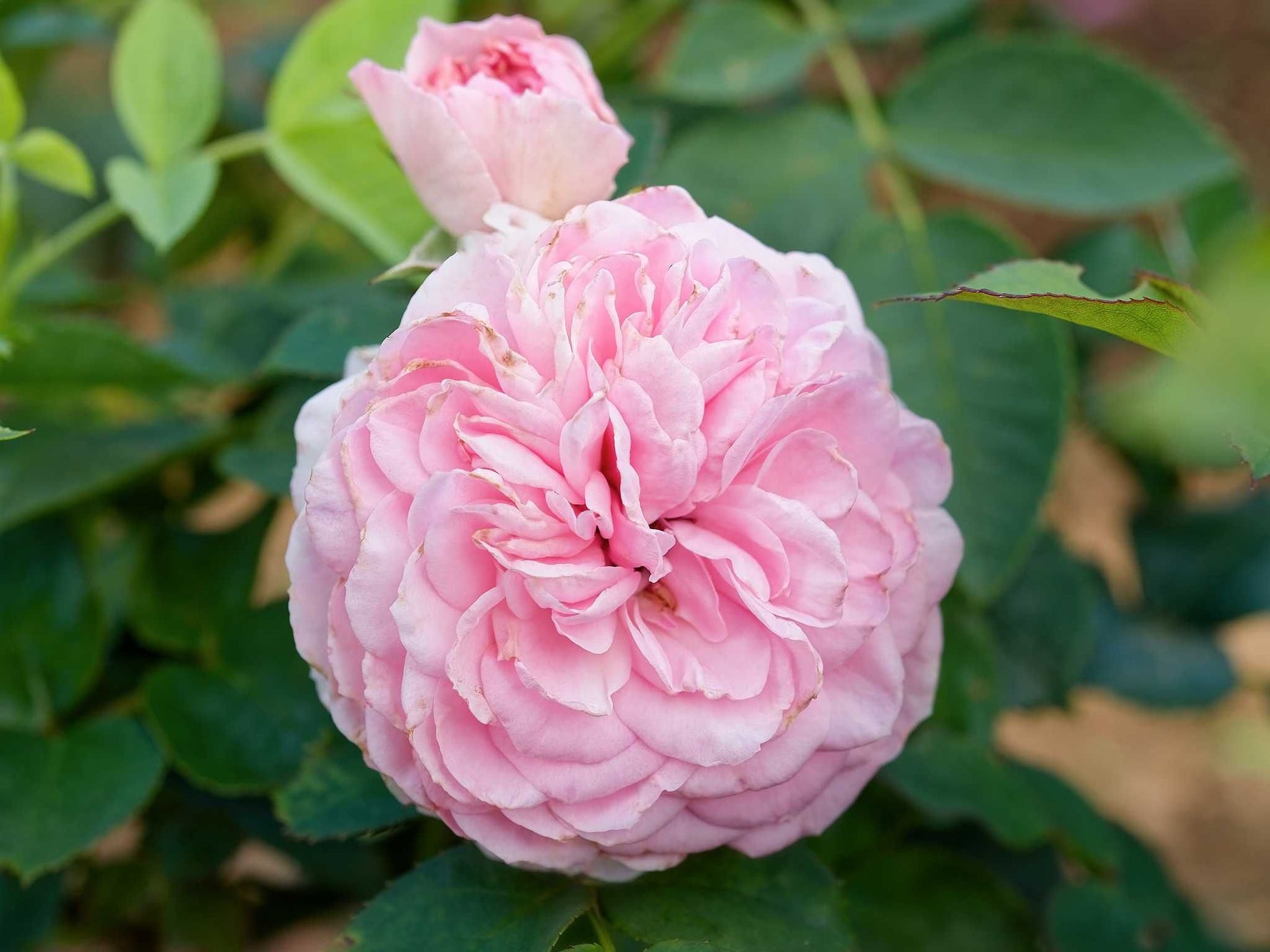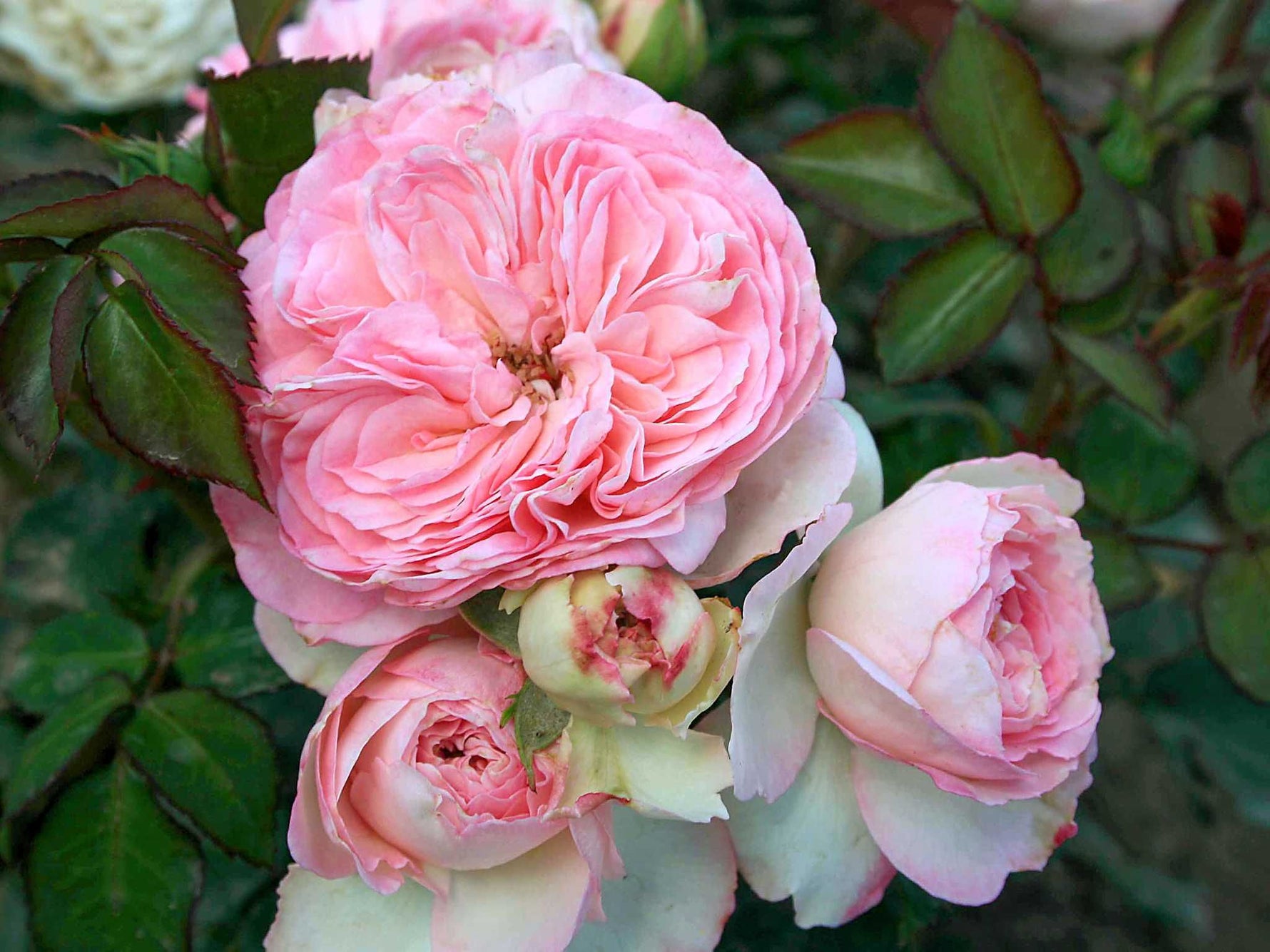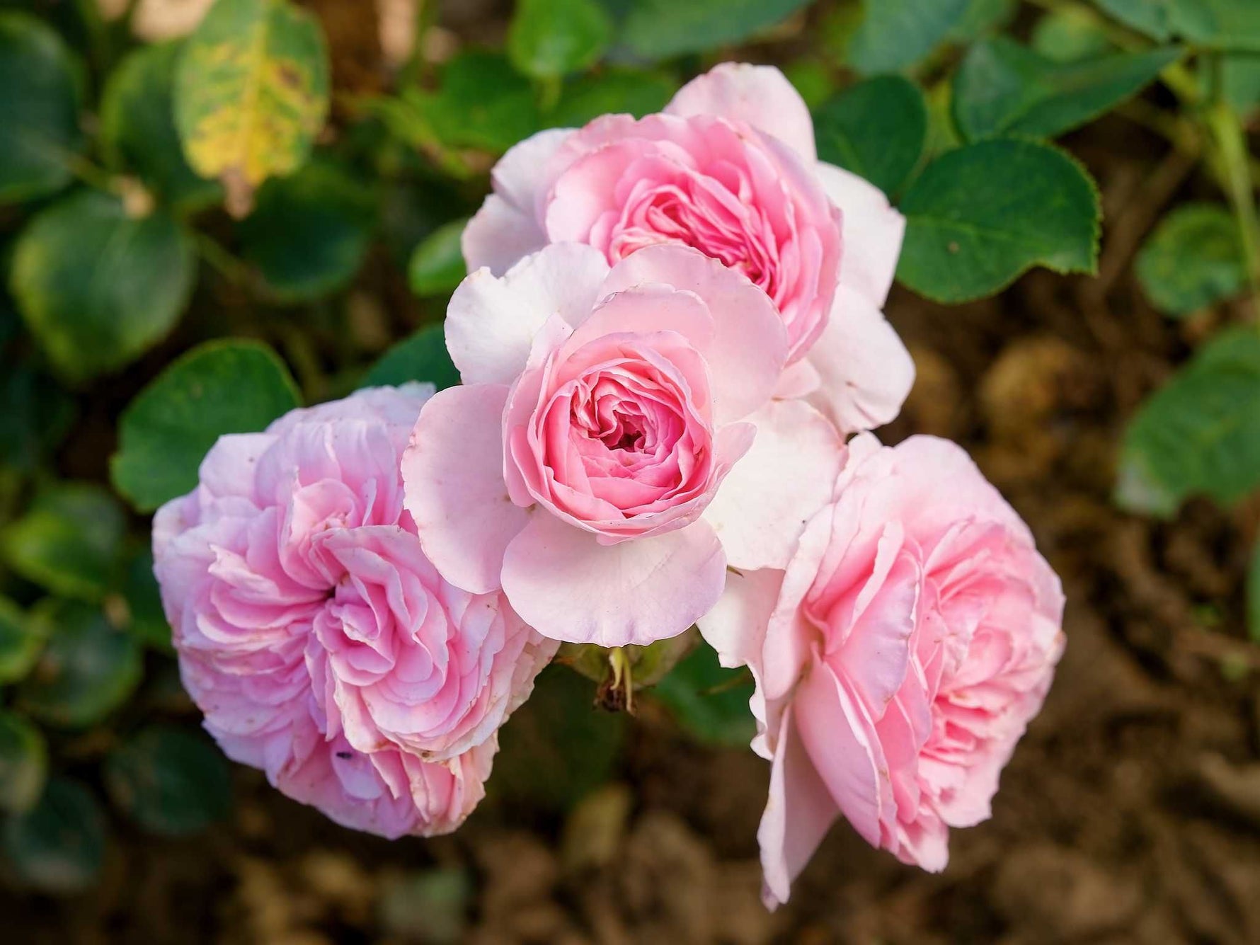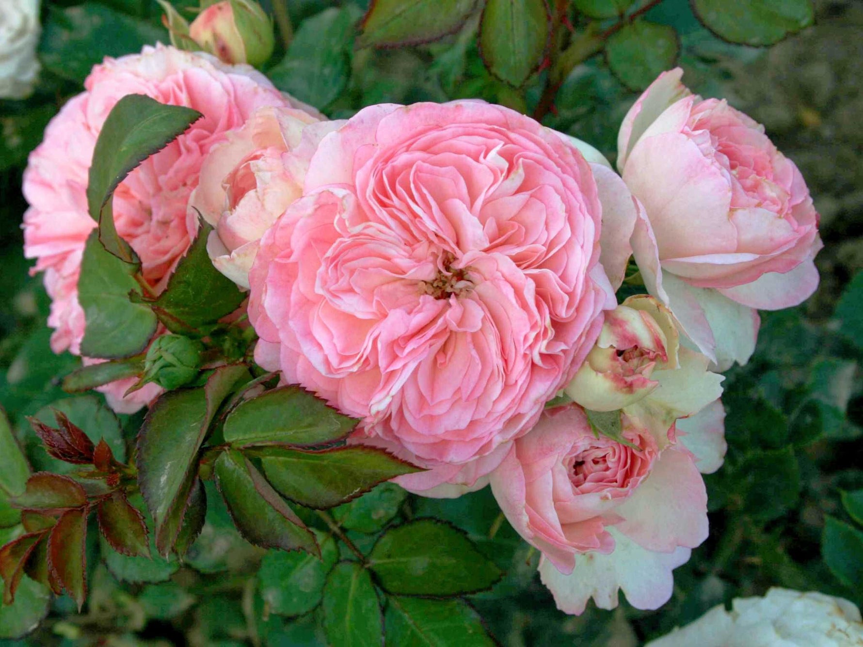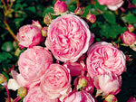 Die dichtgefüllten Blüten in rosa blühen in Dolden. Buschiger Wuchs bis 80 cm Höhe. Robuste Beetrose. Für heiße Lagen und Kübel geeignet