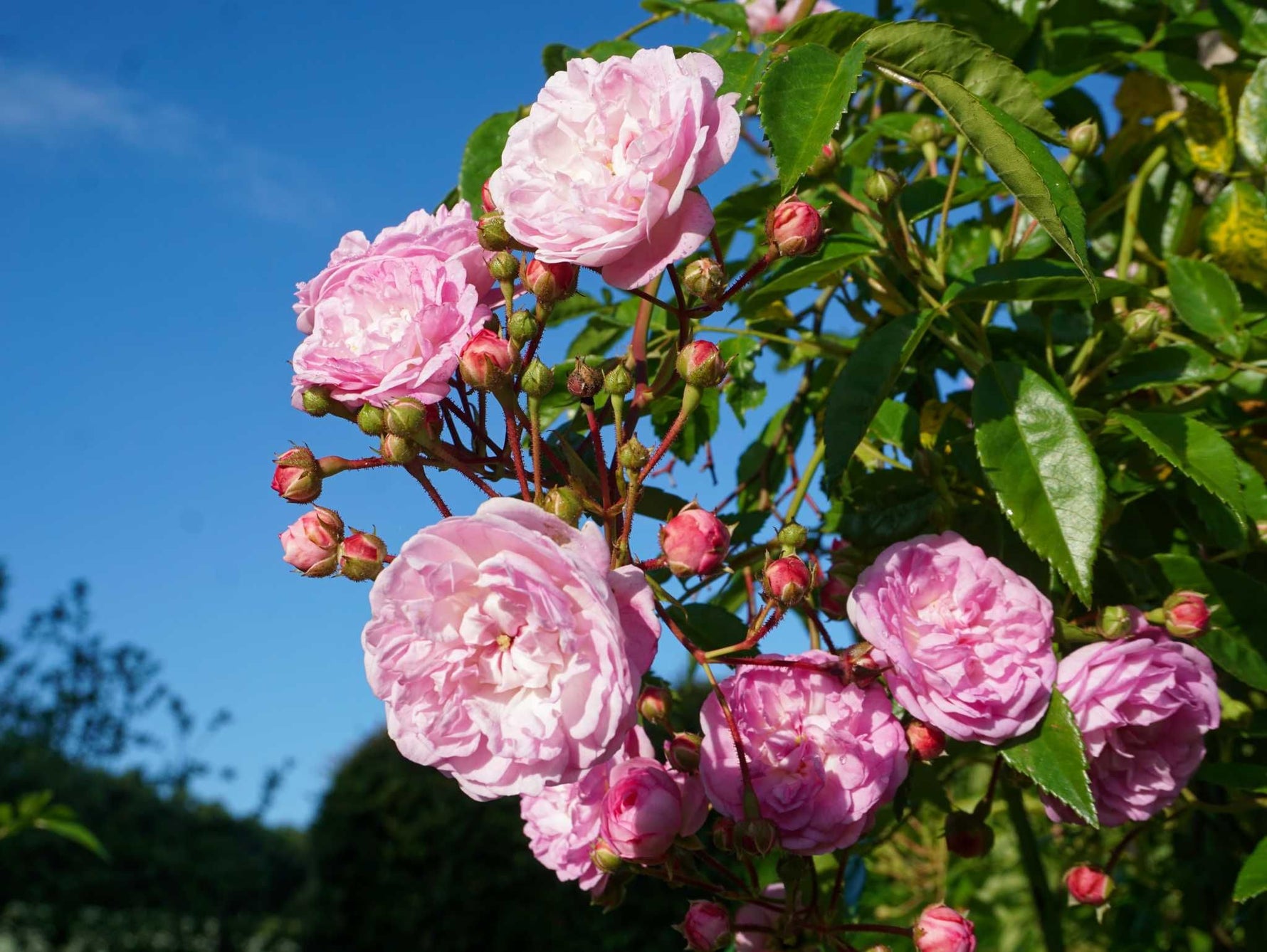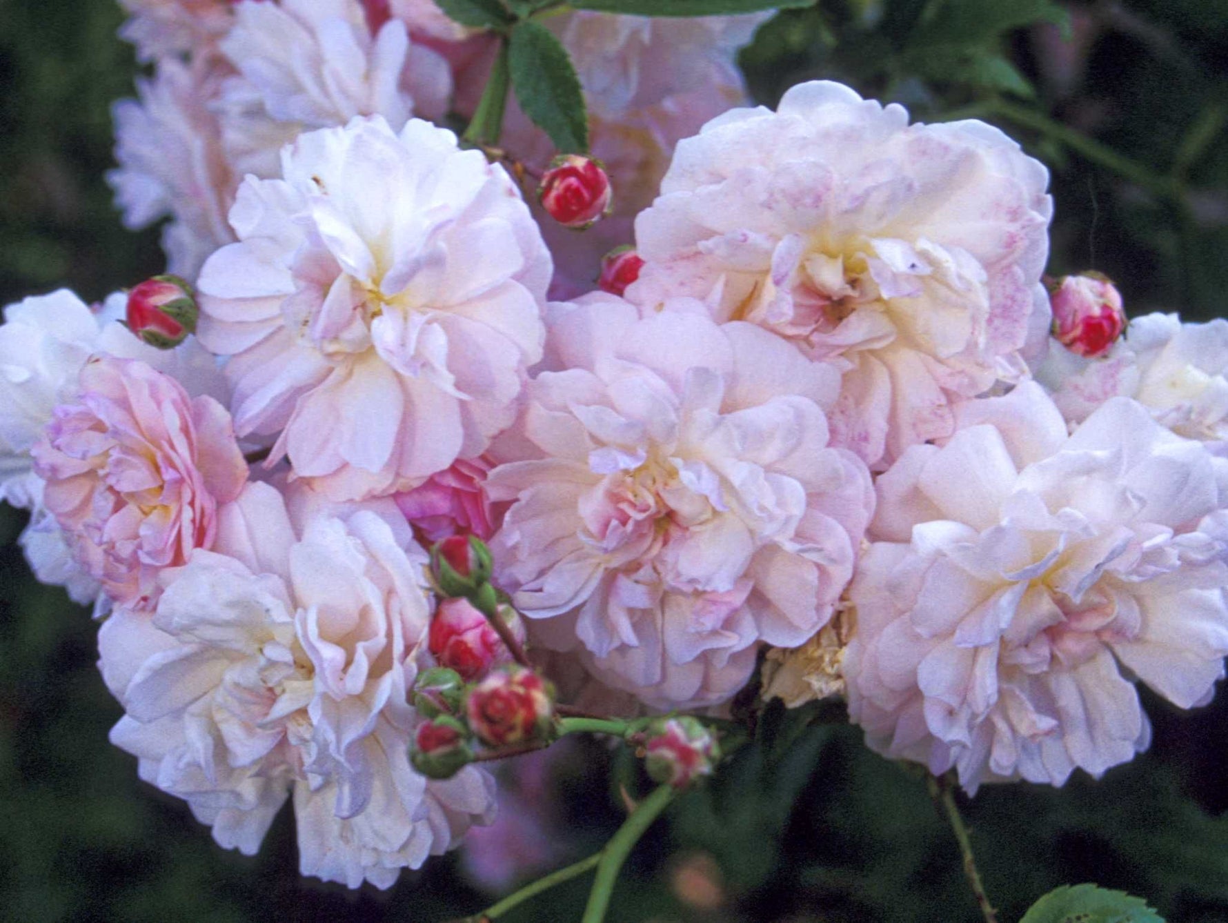 Die kleinen dicht gefüllten Blüten in zartrosa duften stark und bilden große Dolden. Einmalblühend. Kräftiger, buschiger Wuchs bis 600 cm Höhe. Robuste Ramblerrose. Zum Beranken von Bäumen, insektenfreundlich