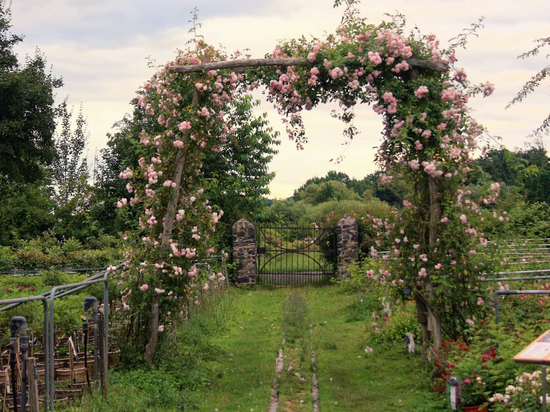 Die kleinen, gefüllten Blüten, die in Büscheln erscheinen, verströmen einen feinen Maiglöckchenduft. Das Laub ist mittelgrün, spitz zulaufend und glänzend. Die Triebe sind kräftig, deutlich bestachelt mit geraden aufrechten Stacheln. Der Wuchs ist ramblertypisch kräftig und stark ausladend. Der Charme liegt hier eindeutig in Duft und Blütenform, Hagebutten bildet sie nicht. Diese außergewöhnliche Ramblerrose entstand in unserem Garten als Zufallssämling. Sie wurde zu Ehren der Biogärtnerin Marie Luise Kreuter getauft, an die sie uns heute noch liebevoll erinnert. Die Taufe durfte Frau Kreuter noch selbst durchführen.