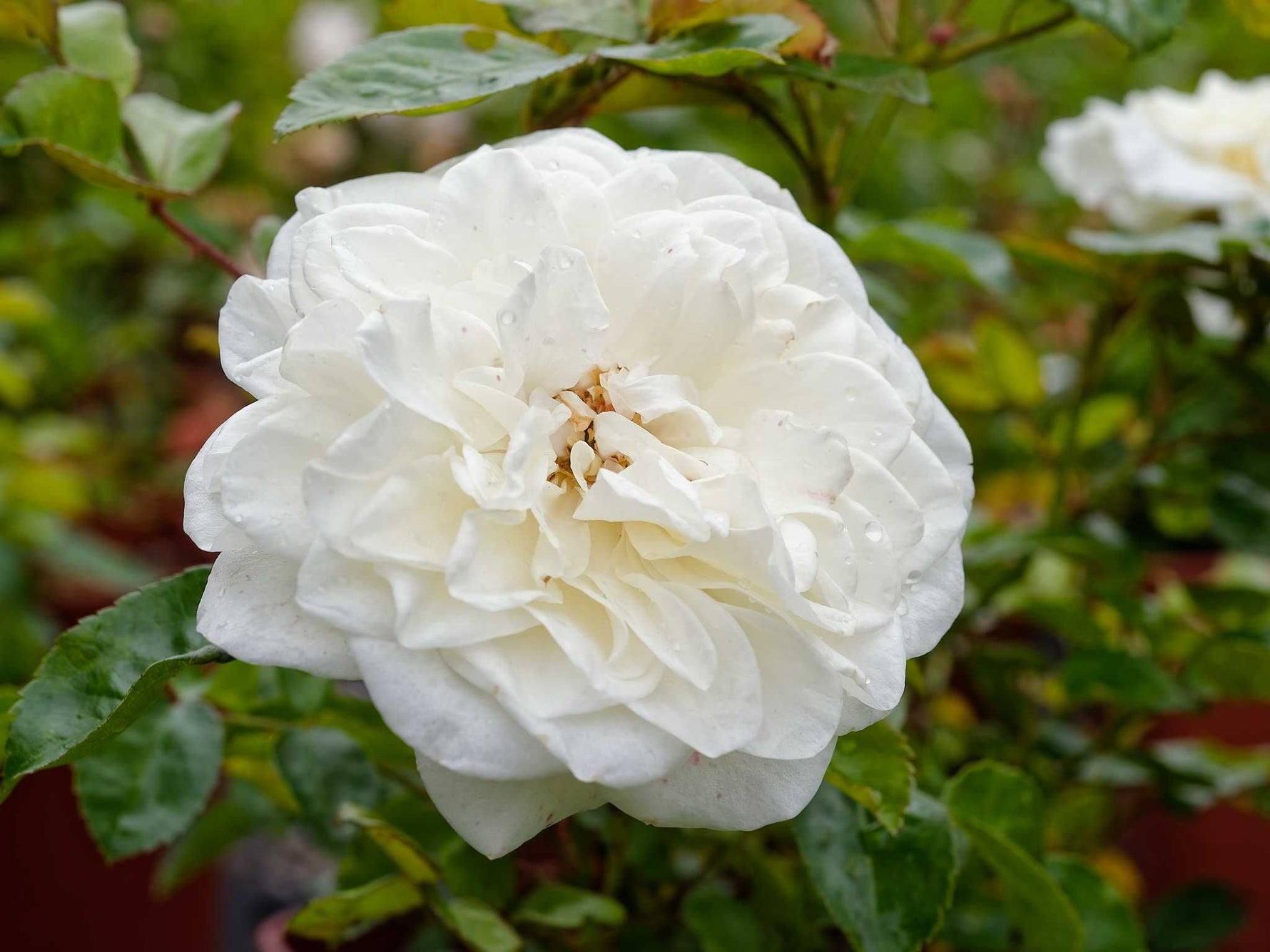 Marina Picasso ist eine bemerkenswerte Sorte, sowohl wegen ihrer Robustheit, mit der sie sich an jede Situation anpassen kann, als auch wegen des romantischen Charmes ihrer zahlreichen, reinweißen gefüllten Blüten. Durch die ununterbrochene Blütezeit von Mai bis zum Frost mit stark gefüllten Blütensträußen und den kompakten buschigen Wuchs lässt sich diese Sorte leicht mit Stauden oder Gräsern kombinieren, sei es im Topf oder im Garten.