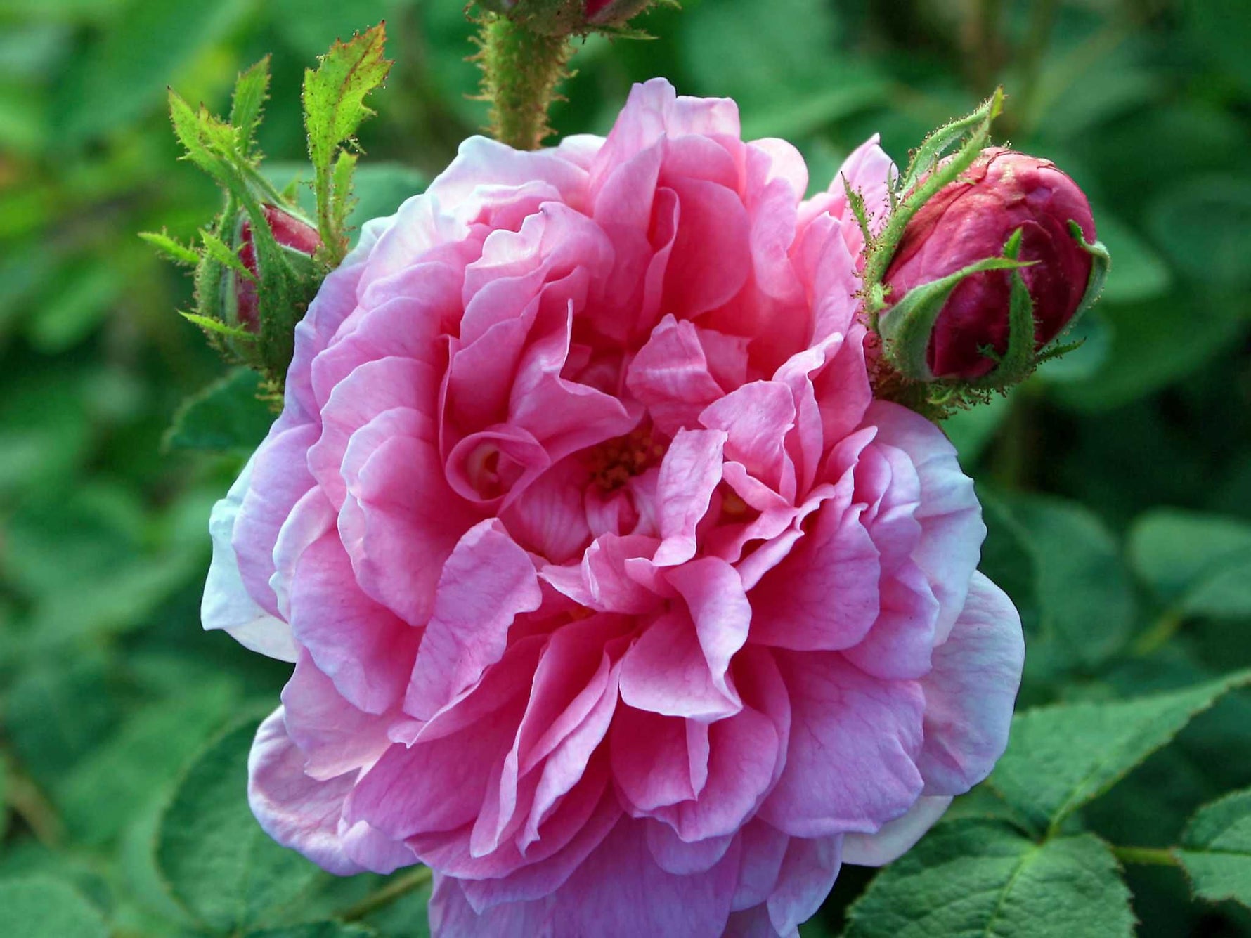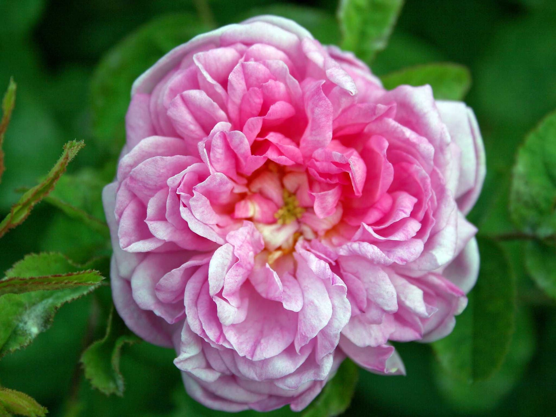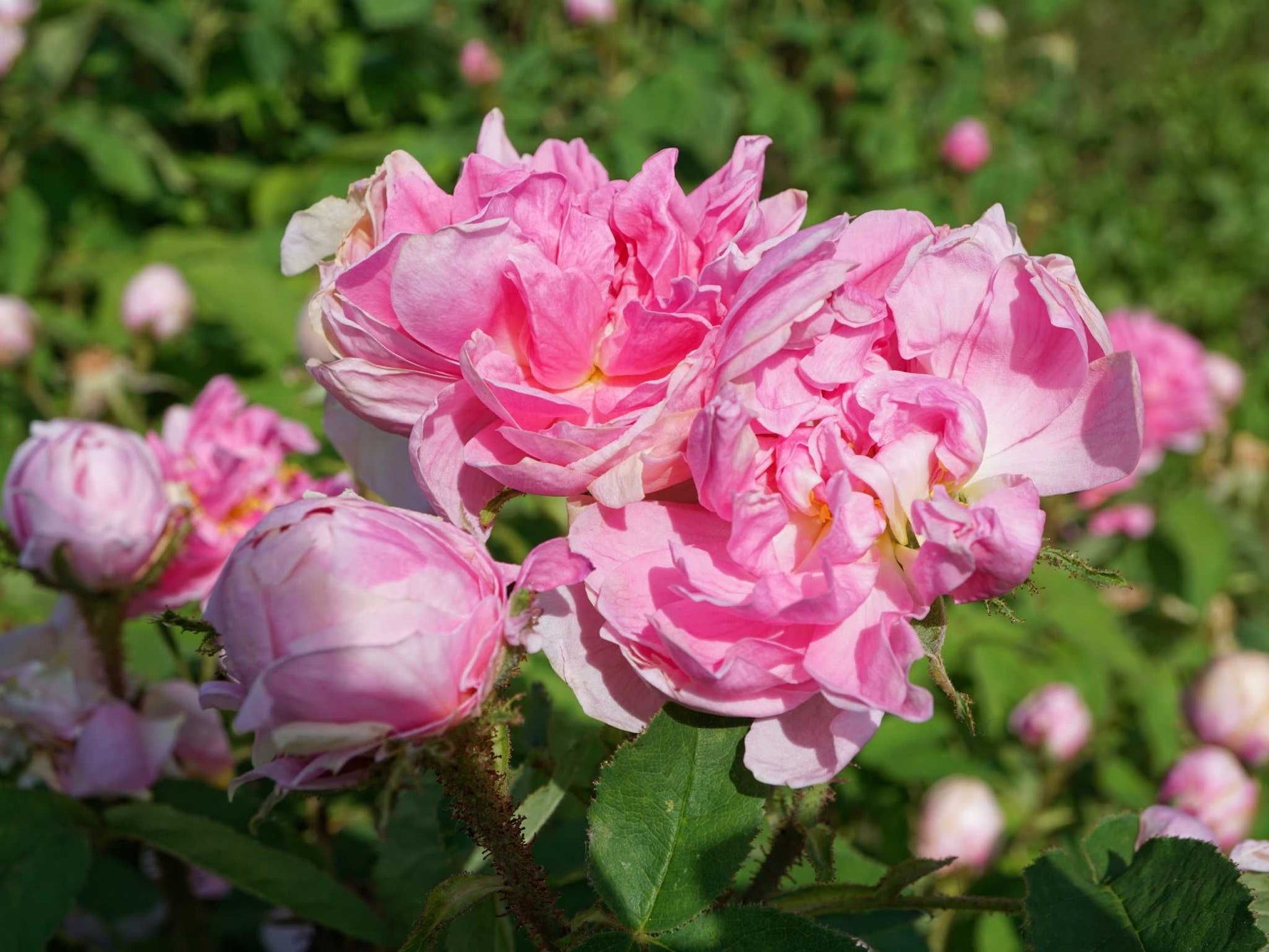 Die dicht gefüllten Blüten in rosa duften sehr stark. Buschig kompakter Wuchs bis 120 cm Höhe. Robuste historische Strauchrose. Zur Rosenblütenernte, Hecken und für Kübel geeignet