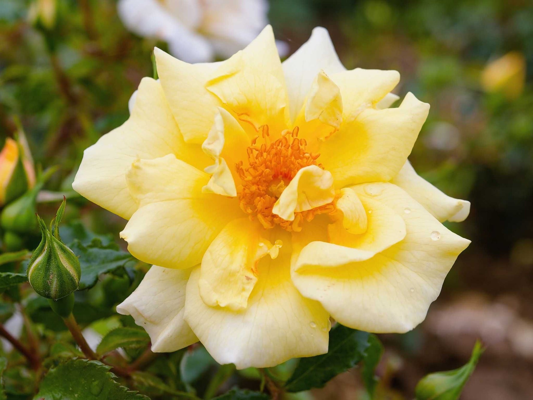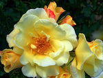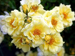 Die halbgefüllten mittelgroßen Blüten in hellem gelb blühen in Dolden. Buschiger aufrechter Wuchs bis 80 cm Höhe. Robuste Bodendeckerrose. Zur flächigen Pflanzung und für Kübel geeignet, insektenfreundlich, bildet Hagebutten