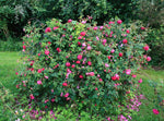 Die halbgefüllten Blüten in rot duften sehr stark. Einmalblühend. Buschig aufrechter Wuchs bis 200 cm Höhe. Sehr robuste historische Strauchrose. Zur Rosenblütenernte geeignet, insektenfreundlich, viele Stacheln