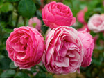 Die dichtgefüllten, kugeligen Blüten in rosa blühen in Dolden und duften zart. Buschiger Wuchs bis 80 cm Höhe. Robuste Beetrose. Für heiße Lagen und Kübel geeignet