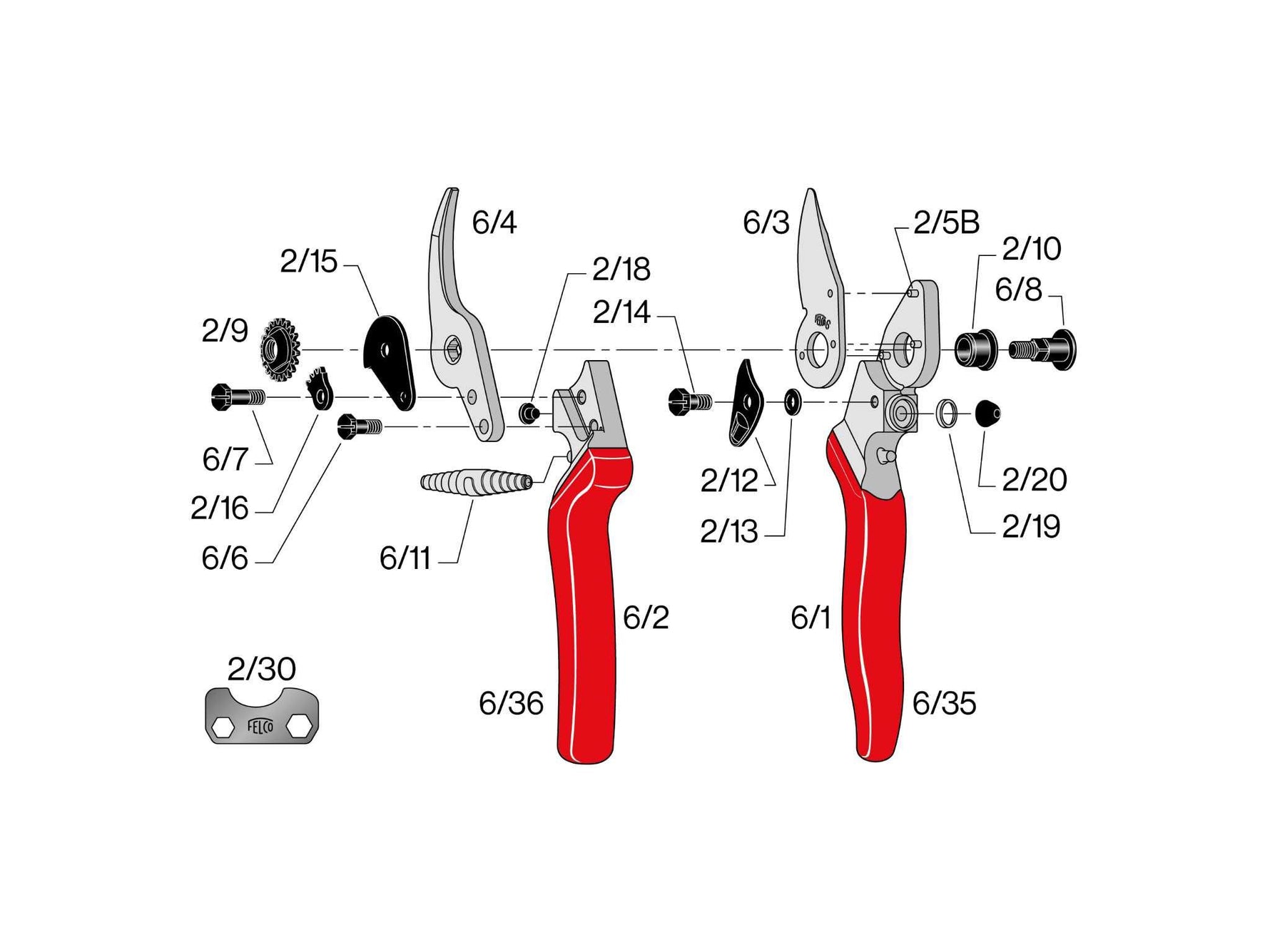 Die Felco 6 ist eine sehr robuste und langlebige Gartenschere mit einem feinen Einstellmechanismus des Schneidekopfes. Im Fall von Verschleiß einzelner Teile, bietet der Hersteller Felco ein großes Ersatzteil-Sortiment, sodass diese Schere über viele Jahre ein treuer Begleiter im Garten sein kann.