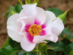 Die Persica-Hybride hat ein wunderschönes Farbspiel. Die gelblichen Blütenknospen öffnen sich zu einfachen cremeweißen Blütenschalen mit wunderschönem purpurfarbenem Auge. Die offene Blüte mit zartem Duft sitzt auf gesunder Belaubung. Sie lockt Insekten an, Hummeln lieben sie. Die Pflanze wächst kompakt und buschig und blüht sehr lange. Sie ist im Garten als Beetrose, Rabattenrose oder auch als sehr schöne Kübelpflanze einsetzbar.