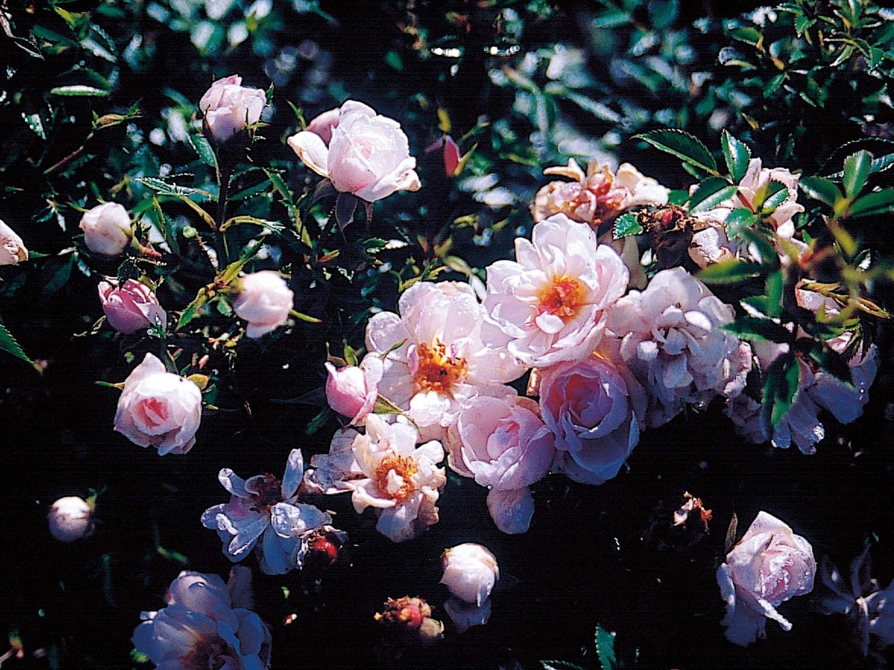 Die kleinen, leicht gefüllten Blüten schimmern zartrosa bis weiß. Das Laub ist sehr filigran, dunkelgrün und glänzend. Die Triebe sind sehr fein und sehr stark verästelt, die ganze Pflanze erinnert mehr an eine Zwergrose als an einen Bodendecker, man könnte sie folgerichtig auch als bodenbedeckende Zwergrose bezeichnen. Eine wunderschöne Rose für liebliche Eckchen und Vorpflanzungen, sehr gut kübelgeeignet.