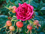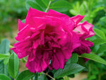Die halb gefüllten, großen Blüten in rosa duften sehr stark. Kräftiger, buschiger Wuchs bis 120 cm. Sehr robuste Sorte. Sehr frostbeständig, zur Blütenernte geeignet, bildet große runde Hagebutten, schöne Heckenpflanze