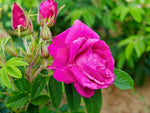 Die gefüllten Blüten in kräftig rosa duften sehr stark. Kräftiger, buschiger Wuchs bis 120 cm. Sehr robuste Sorte. Sehr frostbeständig, bildet manchmal Hagebutten, kübelgeeignet, schöne Heckenpflanze.