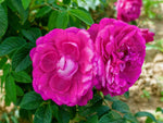 Die sehr großen, gefüllten Blüten duften sehr stark und sind für die kulinarische Verarbeitung gut geeignet. Das Laub ist das typische rugosa-Laub: tief gefurcht, dunkelgrün und glänzend. Ebenso die dunkelbraunen Triebe, die dicht mit feinen Stacheln besetzt sind. Die Sorte ist immun gegen Sternrußtau und Rosenrost und frosthart bis nach Skandinavien. Setzt gelegentlich große Hagebutten an, blüht aber vornehmlich durch bis zum Herbst. Die Züchtungen unserer Wild-Serie entstammen der Leidenschaft unseres 'Opa Georg' für Hagebuttenmarmelade. Da er dafür Hagebutten von rugosa-Zuchtsorten verwendete, die auf unserem Rosenfeld mit vielen anderen Sorten zusammen wuchsen, waren die Gene des Saatguts gut gemischt, und aus der Spaßaussaat der Kerne entstanden tausende von unterschiedlichen Sämlingen, von denen wir die bemerkenswertesten selektiert und weiterveredelt haben.