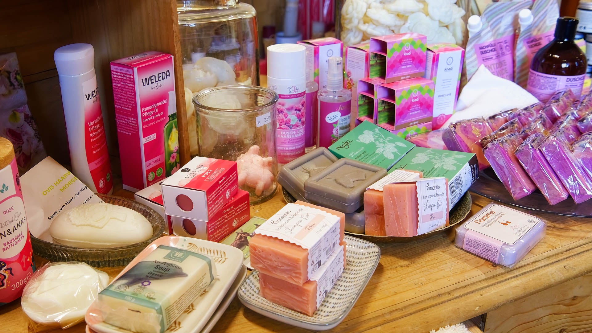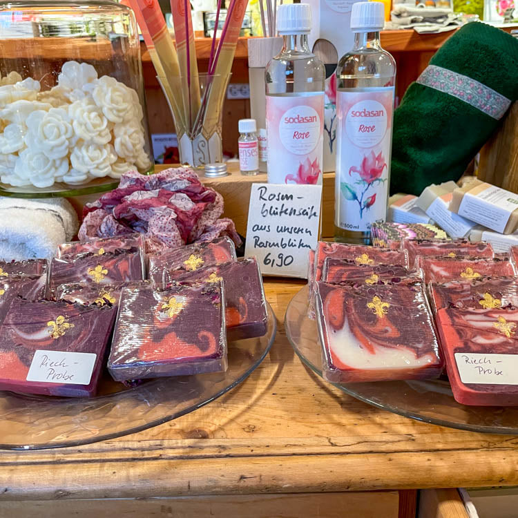 Im Rosenlädchen finden Sie auch eine große Auswahl an rosigen Köstlichkeiten zum Mitnehmen. Ein Großteil wird von Nanetta Ruf aus unseren Rosenblüten in ihrer einzigartigen mobilen KondiTOURei in Bio-Qualität hergestellt.