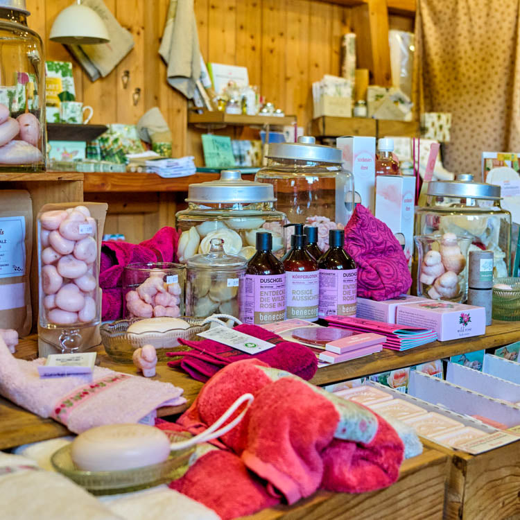 Der Rosenanbau findet direkt um die Gärtnerei herum statt, was Ihnen einen seltenen Einblick in die Rosenkultur ermöglicht. In unserem Rosenlädchen können Sie ein wechselndes Sortiment an Deko- und Geschenkartikeln, Büchern, kulinarischen Köstlichkeiten, Kosmetik, Kleidung und vielem mehr entdecken.